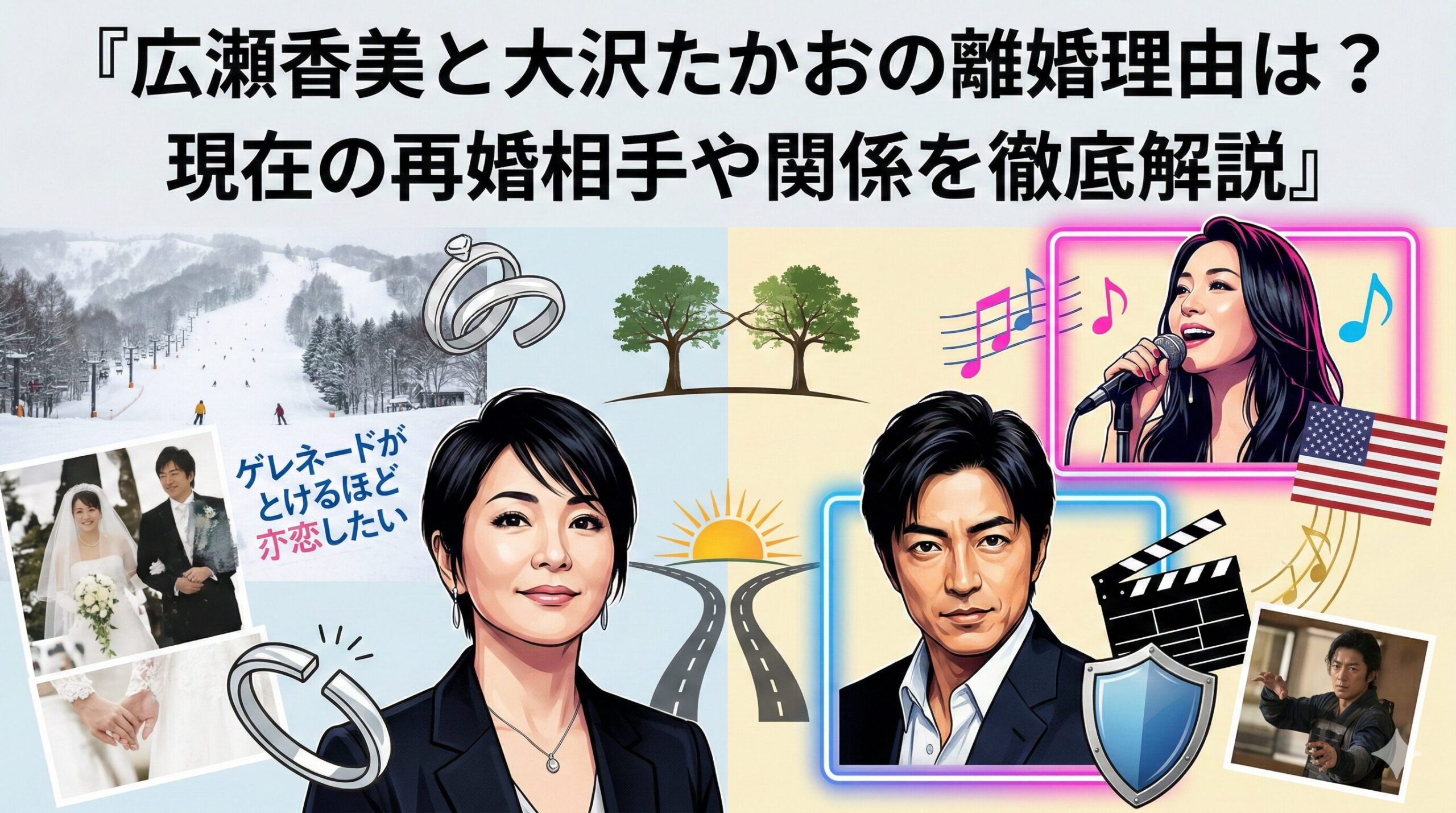 なぜなら、彼らは「嫌い合って」別れたのではなく、「プロとして生きるために」離れたからです。事実、離婚後も大沢さんは広瀬さんの活動を尊重し、広瀬さんも過去を否定するような発言は一切していません。この「潔さ」こそが、二人が一流である証拠なのです。
