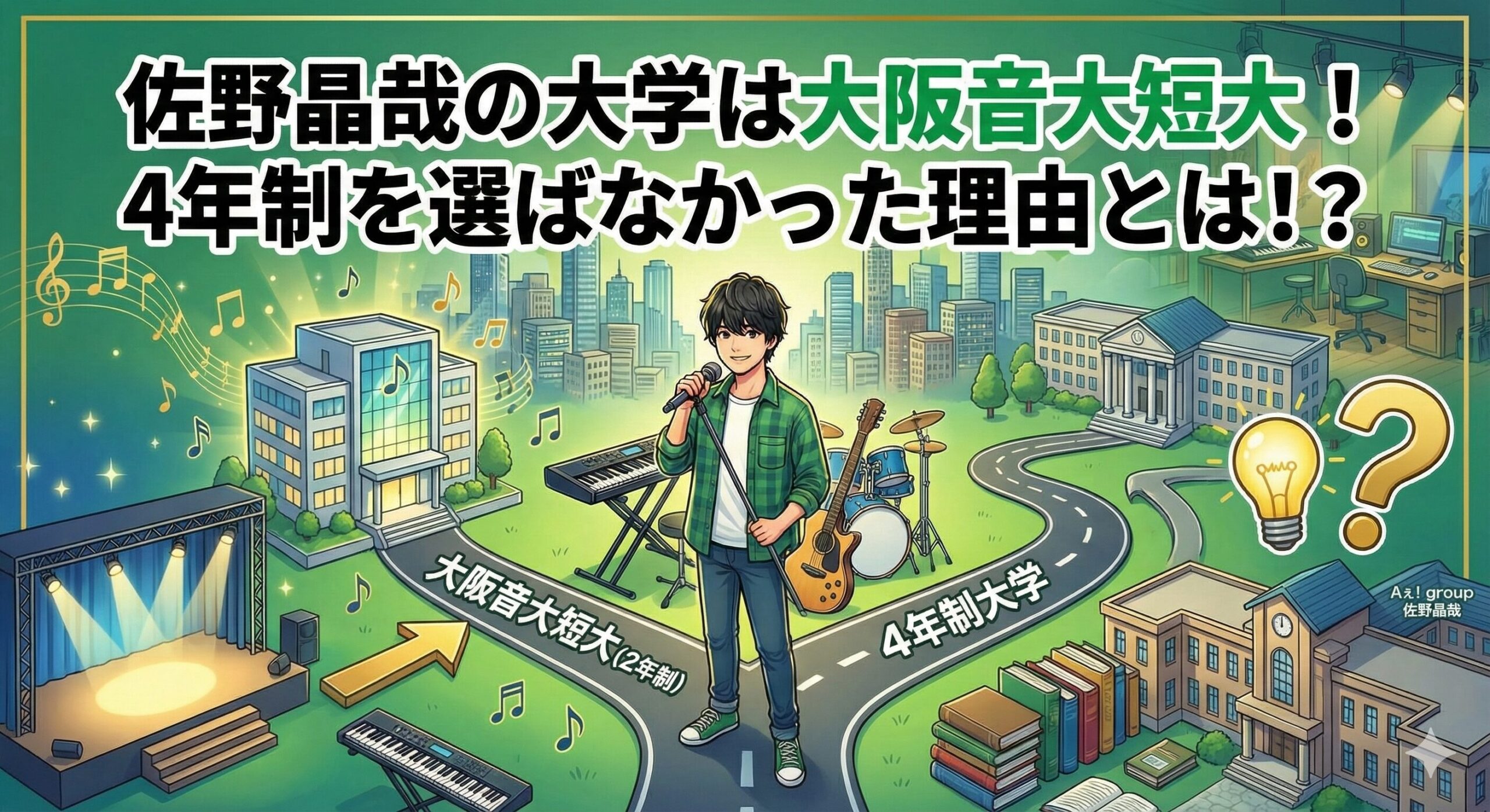 佐野晶哉が大阪音楽大学短期大学部を選んだこと。それは単なる学歴作りではなく、「声楽」という個人の武器を「作曲」というグループの武器に変え、メンバーと共に未来を切り拓くための戦略的な決断でした。